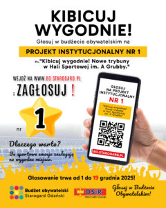 Głosuj na Projekt Instytucjonalny nr 1: „Kibicuj wygodnie! Nowe trybuny w Hali Sportowej im. Andrzeja Grubby” W dniach 1-19.12.2025 odbywa się...