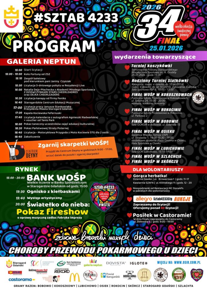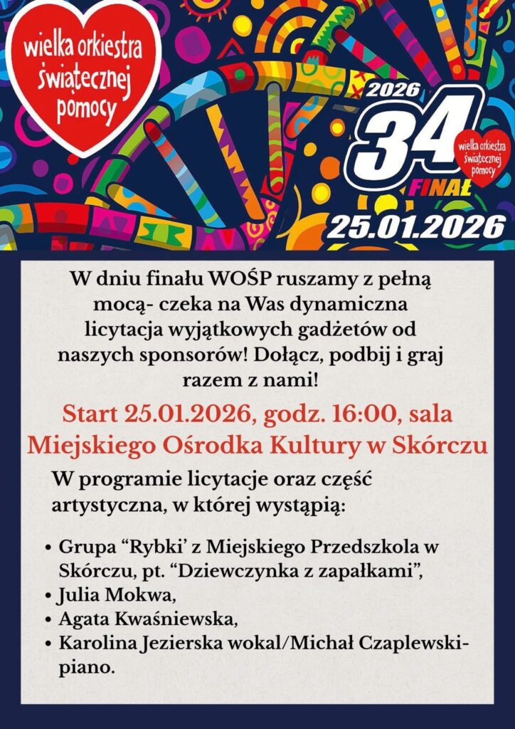 25 stycznia 2026 roku Starogard Gdański i okoliczne miejscowości znowu zabiły jednym rytmem – rytmem serc bijących dla potrzebujących dzieci. Sztab WOŚP #4233, działający przy Ośrodku Sportu i Rekreacji, przygotował dla mieszkańców bogaty program, łącząc tradycyjną zbiórkę datków z licznymi atrakcjami sportowymi, kulturalnymi i rodzinnymi.