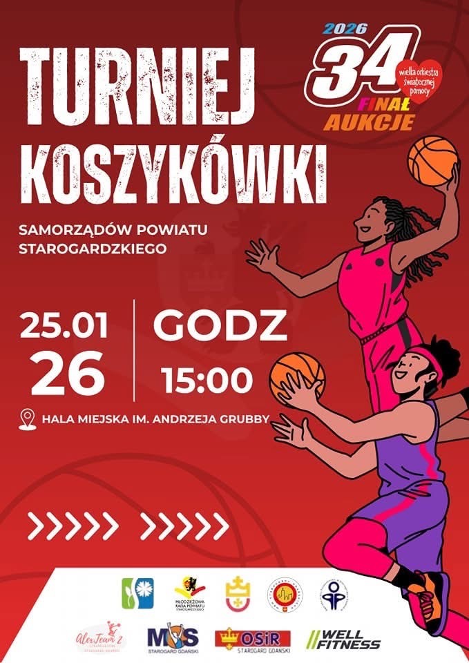 Finał nie byłby kompletny bez sportowych emocji. W Hali Miejskiej im. Andrzeja Grubby odbył się Turniej Koszykówki Samorządów Powiatu Starogardzkiego, w którym rywalizowały drużyny reprezentujące rady powiatu i miasta. Mecze przyciągnęły licznych kibiców i były doskonałą okazją, by połączyć sportową rywalizację z charytatywnym celem WOŚP.