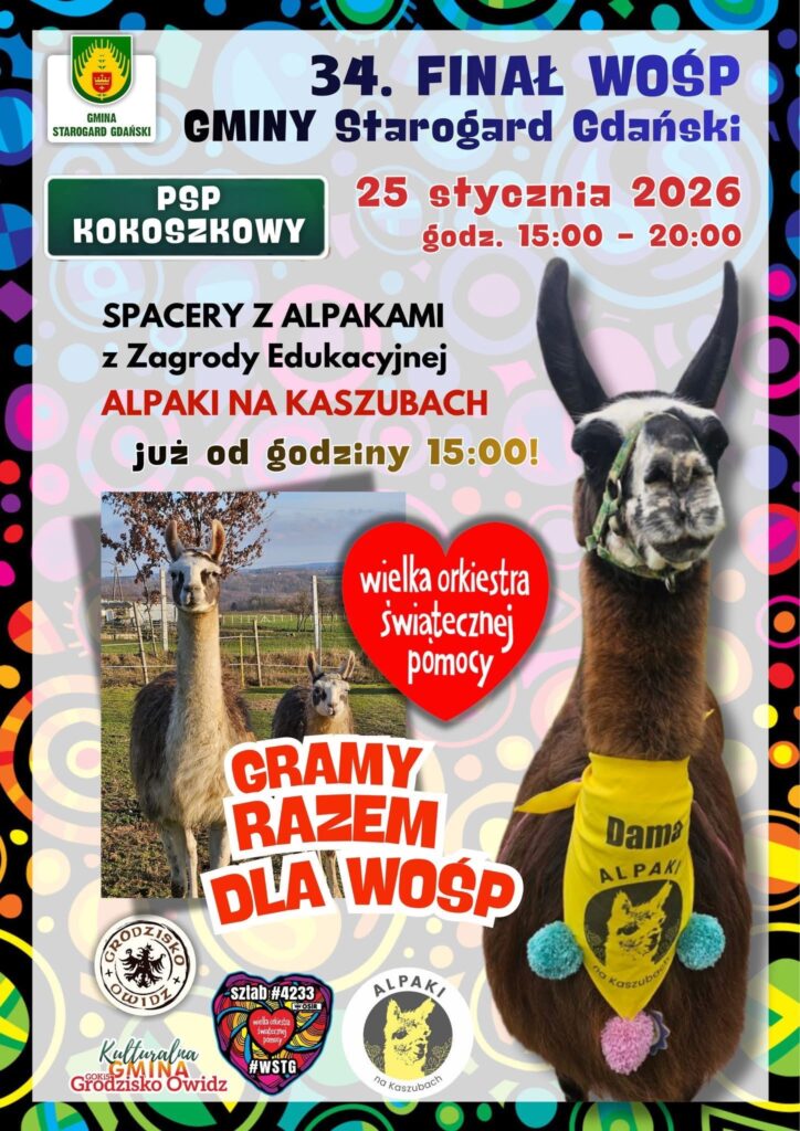 Sztab #4233 wspierały także lokalne finały w okolicznych miejscowościach, dzięki czemu WOŚP objęła cały region. W Kokoszkowach dzieci i dorośli uczestniczyli w konkursach, spacerach z alpakami, konkursie kulinarnym sołectw i wspólnym malowaniu Wielkiego Serca Gminy.