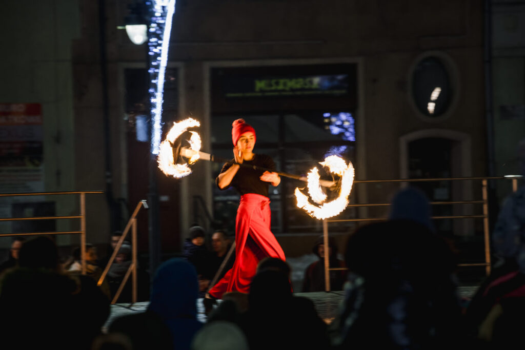 Wieczorem na rynku miejskim rozpalono ognisko, przy którym można było upiec kiełbaski i skosztować gorącej zupy. Wspaniałym zakończeniem dnia był występ Dejka Cheerleaders oraz pokaz Fireshow, który oczarował zgromadzoną publiczność.