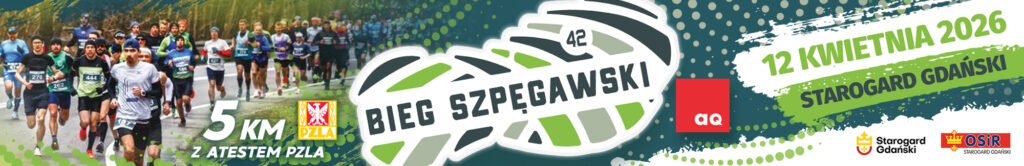 Z przyjemnością informujemy, że rozpoczęły się zapisy na 42. Bieg Szpęgawski, który odbędzie się w niedzielę 12 kwietnia 2026 r. w Starogardzie Gdańskim. Przed nami kolejna edycja jednego z najstarszych biegów ulicznych na Pomorzu – wydarzenia, które od lat łączy sportową rywalizację z pamięcią o historii naszego regionu.